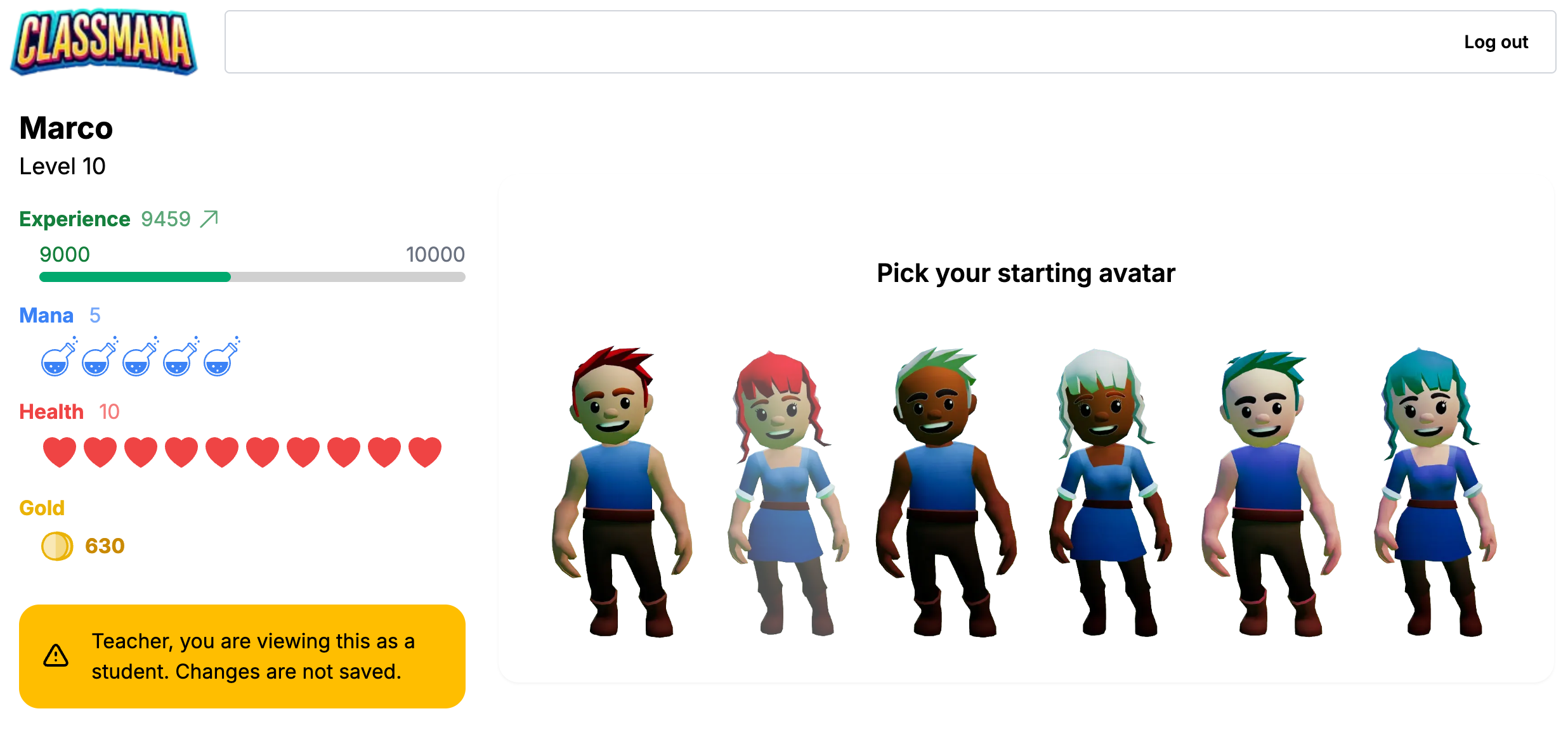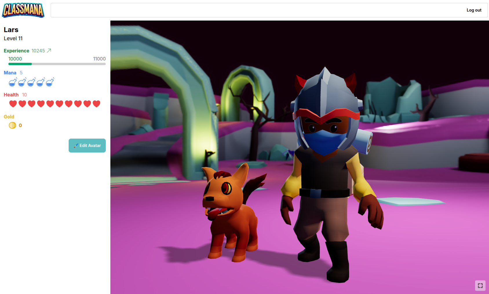 In de tweede fase krijgen je studenten een login. Dan kunnen ze inloggen op hun account en hun avatar aanpassen. Hun avatars worden getoond in het klasdashboard. Bij elke level up kunnen studenten coolere uitrusting uitrusten. In totaal zijn er 35 levels, zodat je ze een heel schooljaar bezig kunt houden wanneer ze elke week een level omhoog gaan.